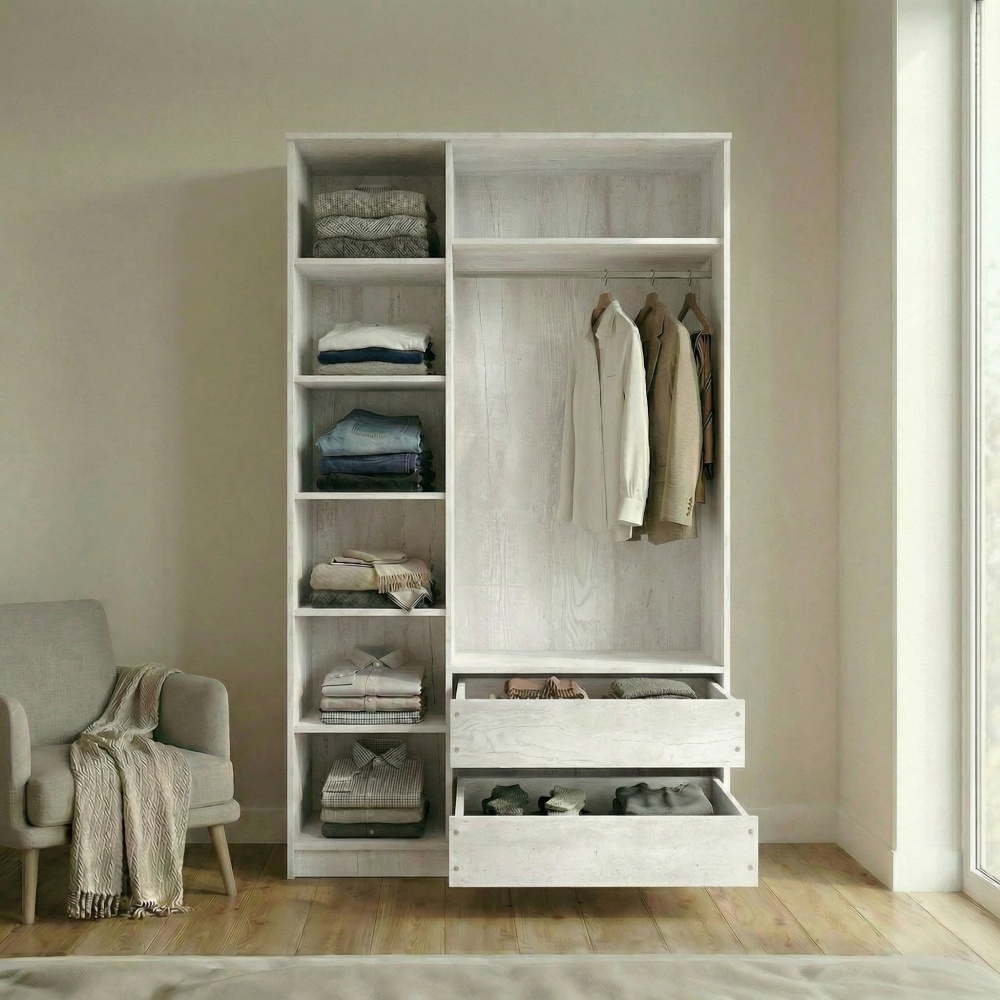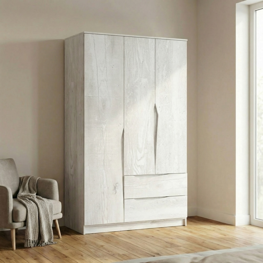 Большой вместительный шкаф - это прекрасное решение для грамотного использования пространства вашей комнаты. Шкаф имеет три двери, с помощью которых вы можете быстро и удобно добраться до ваших вещей, обуви и белья. Шкаф имеет множество полок, ящиков и отделений, чтобы удобно организовать все ваши вещи и одежду.