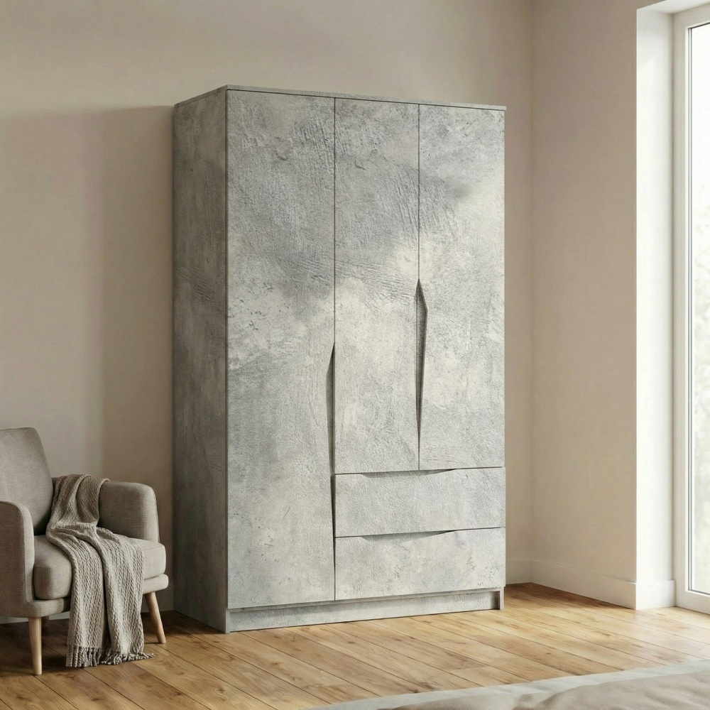 Большой вместительный шкаф - это прекрасное решение для грамотного использования пространства вашей комнаты. Шкаф имеет три двери, с помощью которых вы можете быстро и удобно добраться до ваших вещей, обуви и белья. Шкаф имеет множество полок, ящиков и отделений, чтобы удобно организовать все ваши вещи и одежду.